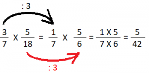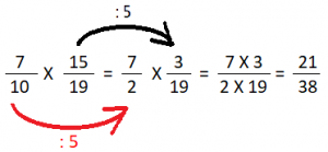 In Sonderfällen kann man bei der Multiplikation von Brüchen auch über Kreuz kürzen. das heißt man kürzt Zähler des ersten Bruchs mit dem Nenner des zweiten oder den Nenner des ersten Bruchs mit dem Zähler des zweiten Bruchs.