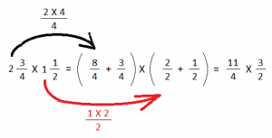Gemischte Zahlen werden multipliziert indem man sie zunächst in unechte Brüche umwandelt.