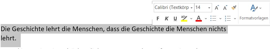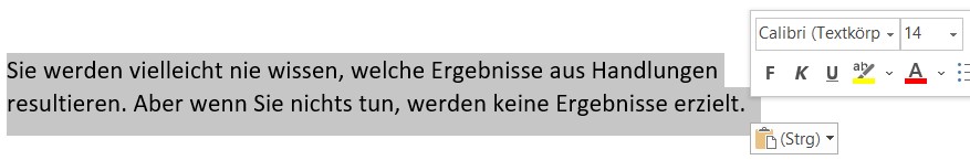 - Markieren Sie mit gedrückter linker Maustaste den zu formatierenden Text: